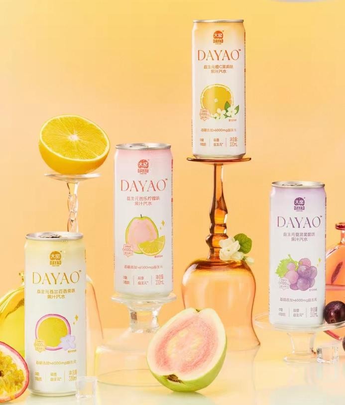 益生元果汁汽水,堪称大窑“轻养生”战略的拳头产品。它在0糖0脂的配方基础上,每罐添加6000mg双重益生元和100mg维生素C。橙C茉莉、芭乐柠檬、夏黑葡萄、苍兰百香果四种口味,既保留了碳酸饮料特有的气泡感,又融合了真实果汁的天然果香,让我们消费者在餐桌上举杯畅饮时自在享受。